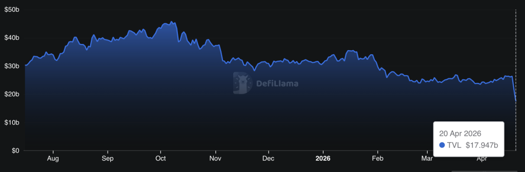 Aave’s total value locked collapsed from $26.4 billion to $17.94 billion, stripping it of the top DeFi protocol ranking it held going into the weekend. Curve Finance, Ethena, and BitGo’s Wrapped Bitcoin all paused LayerZero bridge usage as a precaution.