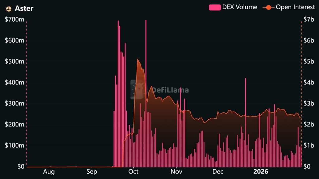 Aster currently ranks second among perpetual DEX platforms with an average daily volume of $7 billion, capturing over 14% of the market.