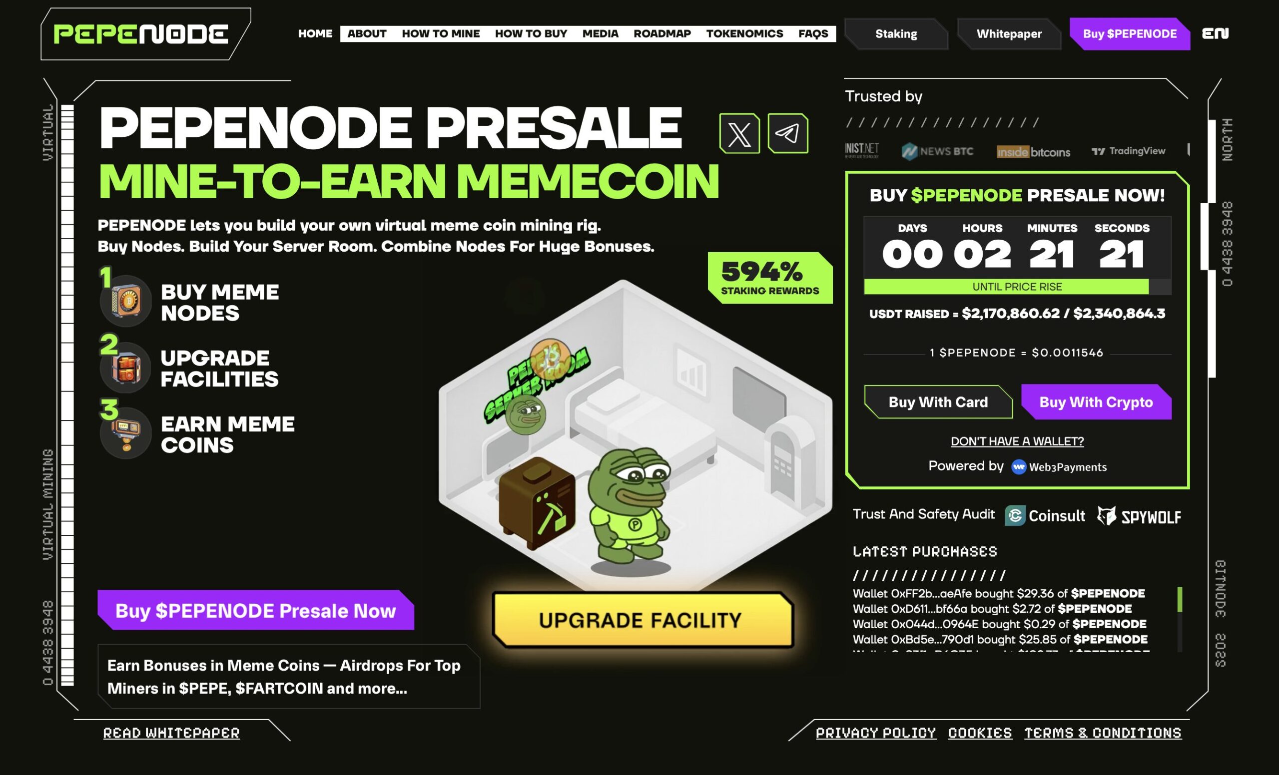 By spending PEPENODE to buy more virtual mining nodes, users can even earn greater rewards, which the protocol will pay out in established tokens such as Pepe and Fartcoin.