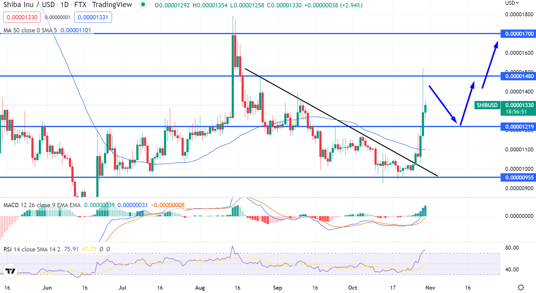 Investors should look for buying positions over $0.000012 today because the RSI and MACD are in buying mode.