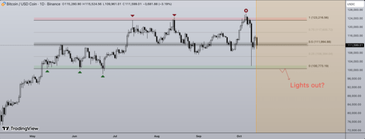 This wick refers to the flash crash wick that was established last Friday, when the Bitcoin price fell to $102,000. The market continues to struggle to recover from the last crash, even with Bitcoin being above $110,000, and another breakdown toward $102,000 could be catastrophic for altcoins.