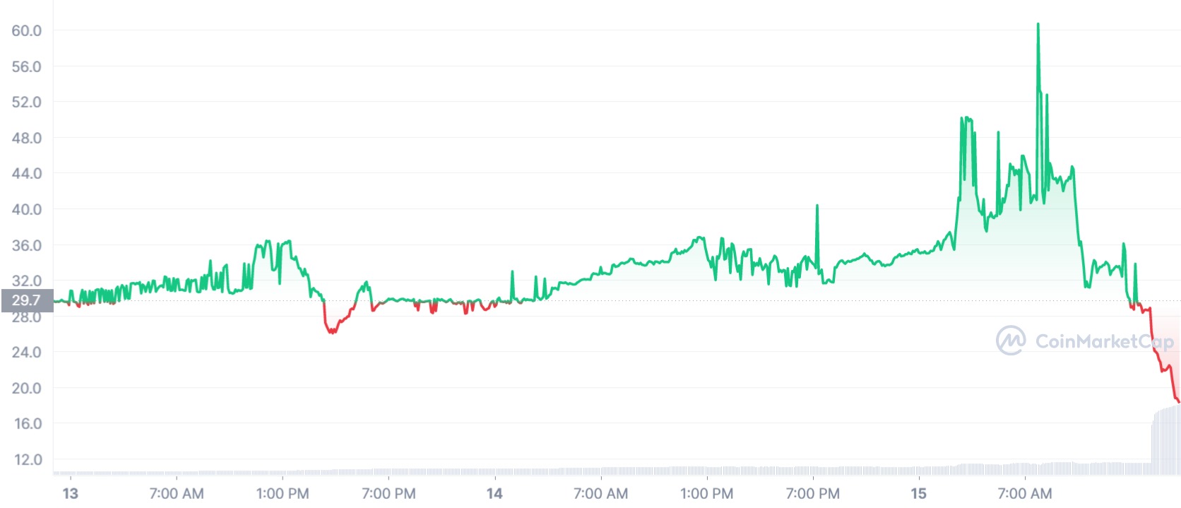 The PoW token will be received via airdrop to holders of Ethereum, with its price varying over the last few days quite drastically. Peaking as high as $60, it currently trades at $18.