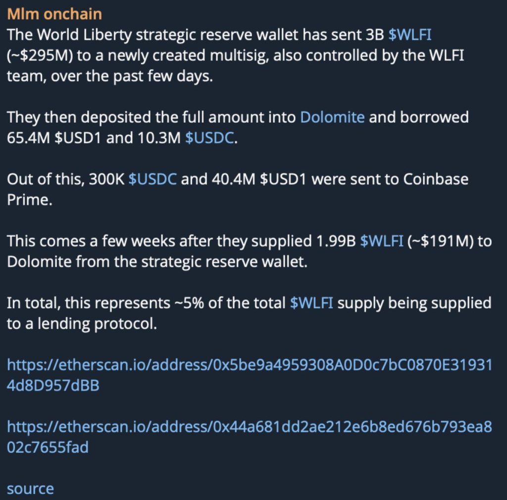 The structure is direct and that’s what makes it dangerous. Entities linked to World Liberty Financial deposited $484M worth of WLFI into Dolomite Protocol, using those tokens as collateral to borrow USDC.