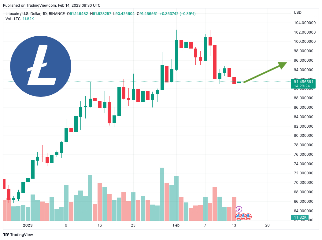 The litecoin price has gained by 1.4% in the past 24 hours, climbing to $91.34 as the cryptocurrency market continues to weather the effects of the SEC taking enforcement action against Paxos and its BUSD stablecoin. Its current price marks a 5% loss in a week, although the coin remains up by 4% in the last 30 days.