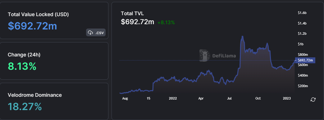 Optimism price rally may also be attributed to a tenacious growth in the total number of assets locked up in smart contracts. According to Defi Llama, the network boats $692 million in total valued locked (TVL) following an 8.13% increase in 24 hours.
