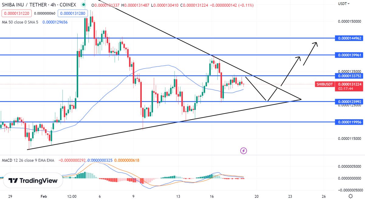 From a technical perspective, Shiba Inu was unable to surpass $0.0000132, a level driven by downward trendline resistance. In the event of a drop below this level, the cryptocurrency is likely to find immediate support around $0.0000126.